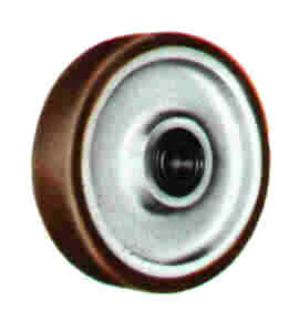 Roues bandage polyuréthane dureté shore 95, moulé sur corps en polyamide 6 de qualité supérieure, silencieuse au roulement, bonne tenue sous charges, aux chocs, à l'usure et à la corrosion.