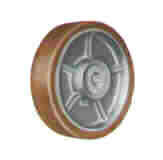 Roues bandage polyuréthane dureté shore 95, moulé sur corps fonte nervuré, silencieuse au roulement, bonne tenue sous charge, aux chocs, aux abrasifs, aux hydrocarbures et à l'usure.